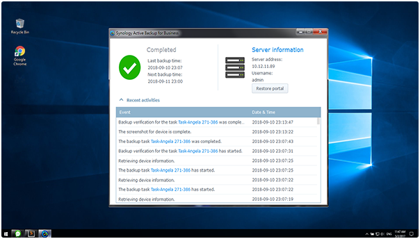 面對意外事件是否能具備快速恢復能力,是我們評估備份解決方案的關鍵要素。Active Backup for Business 采用多種方法來恢復數(shù)據(jù),可以滿足物流部門嚴格的停機時間要求。除了虛擬環(huán)境的即時恢復之外,用戶可以根據(jù)需要自助恢復單個文件,降低 IT 管理員工作負擔。
