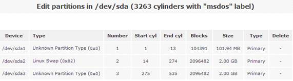 然后點擊磁盤“/dev/sda”,系統(tǒng)會顯示當(dāng)前磁盤的詳細分區(qū)信息。如圖