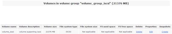 在右側(cè)的“Volumes section”區(qū)域選擇“Manage Volumes”選項,可以看到剛剛創(chuàng)建的 iSCSI 卷信息。如圖